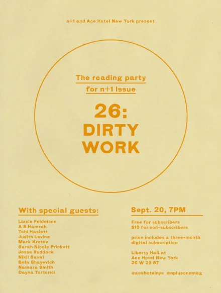 The evening will feature special guest readings and MC duties from Lizzie Feidelson, A S Hamrah, Tobi Haslett, Judith Levine, Mark Krotov, Sarah Nicole Prickett, Jesse Ruddock, Nikil Saval, Bela Shayevich, Namara Smith and Dayna Tortorici.